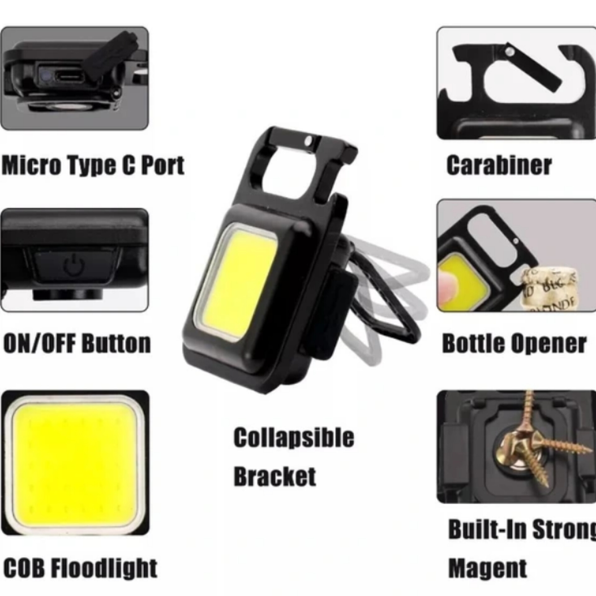 چراغ قوه آهنربایی شارژی COB چندکاره (جاسوئیچی)