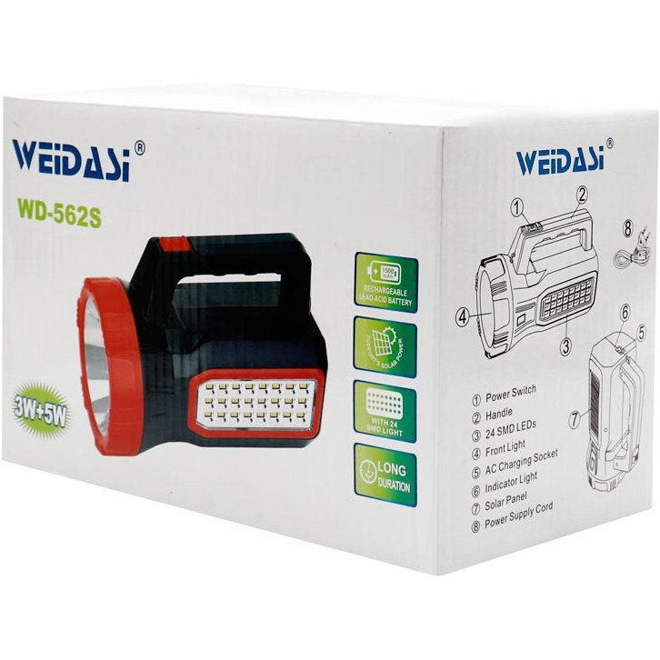 چراغ قوه خورشیدی ویداسی مدل WD-562S نور مهتابی